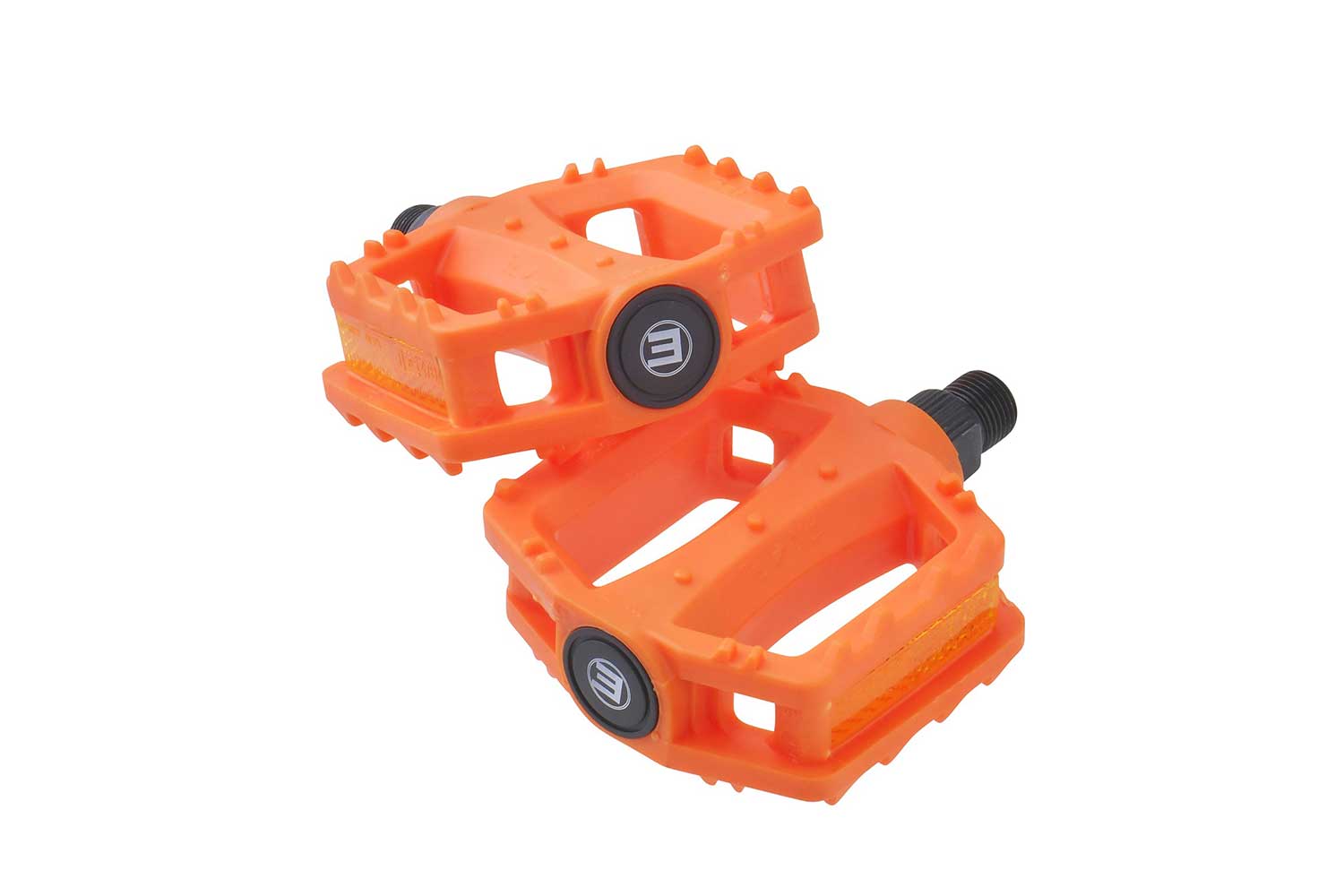 軽量で衝撃吸収性の高い樹脂製。夜間も安心なリフレクター(反射板)と滑りにくいギザギザ付き。