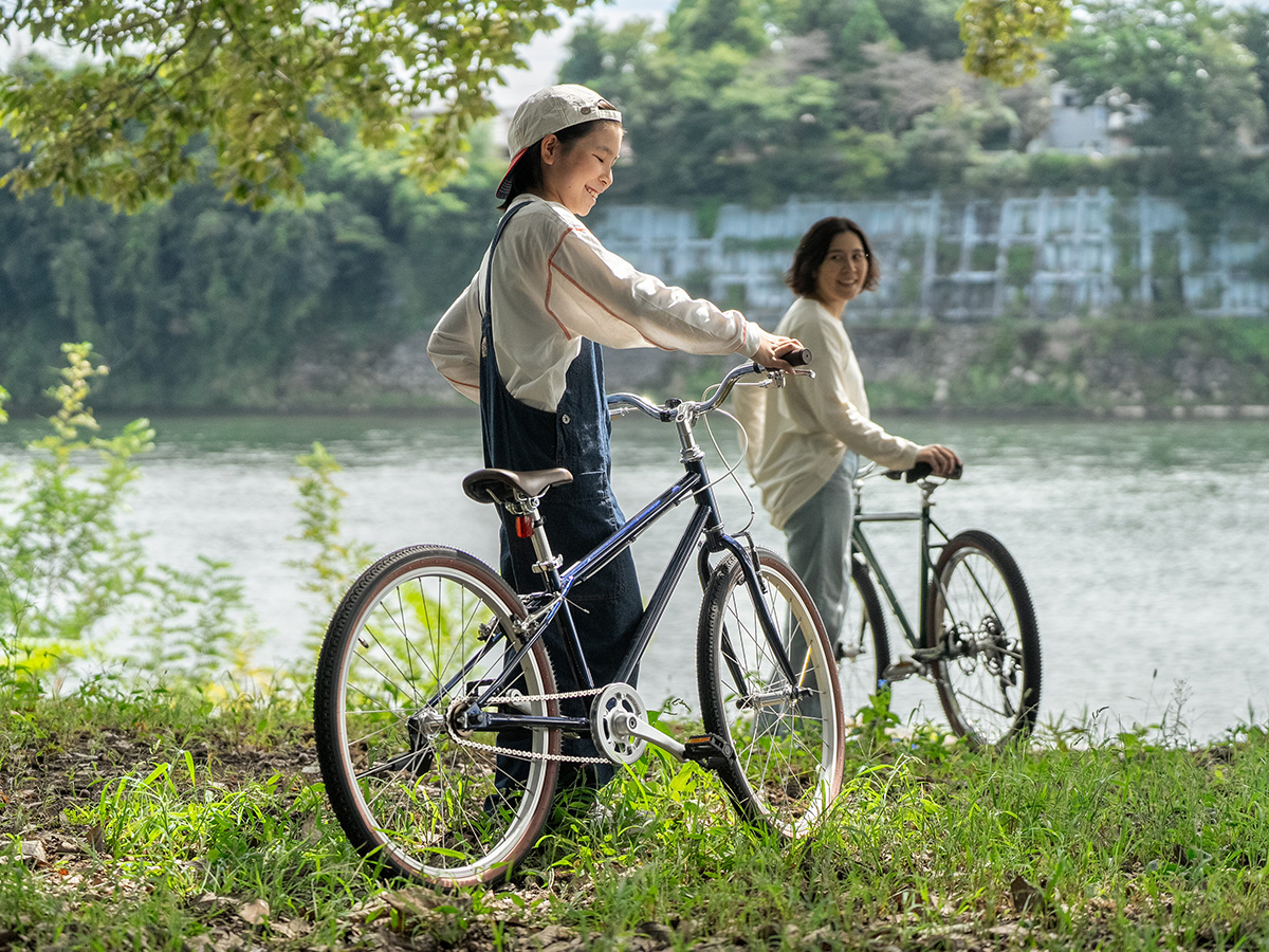 軽量アルミフレームと太めタイヤで、操作性と安定感を両立させた「自転車あそび」のためのモデル。