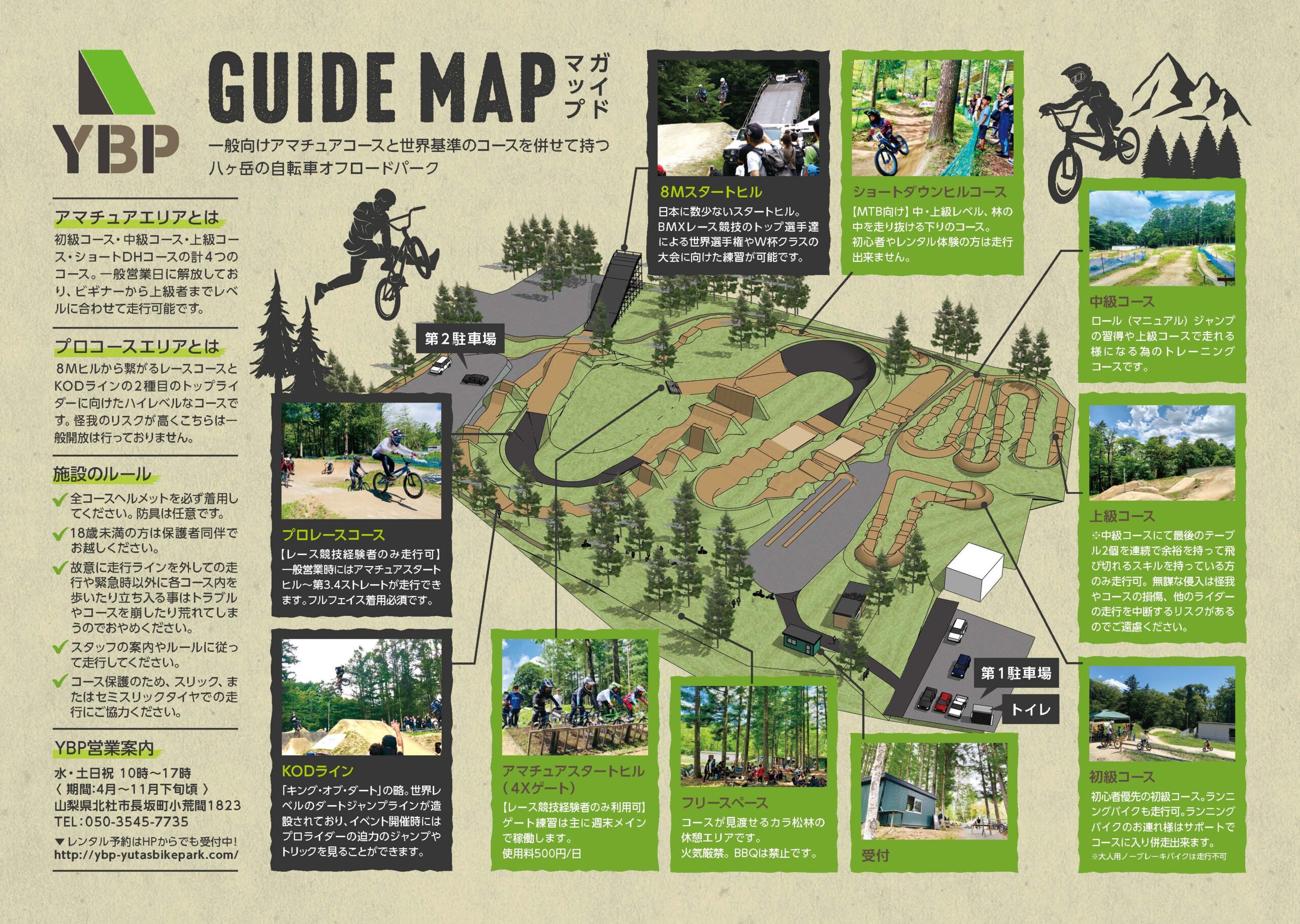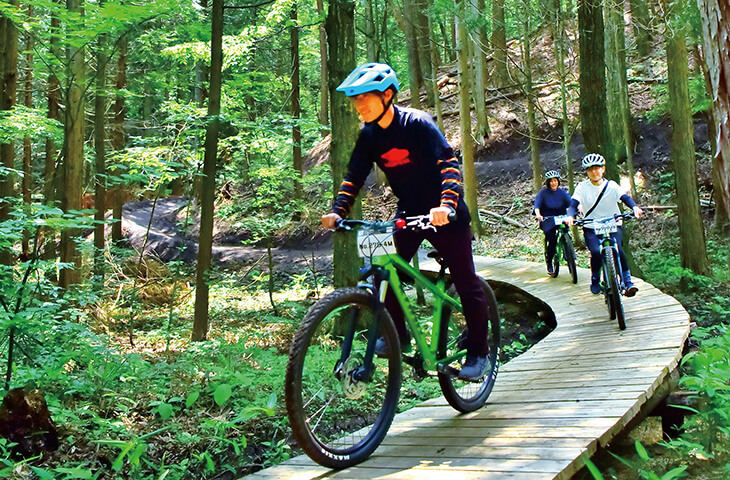 「自転車に初めて乗る子供から経験者まで、ファミリーからプロまですべての人々が楽しめる」をコンセプトとしたマウンテンバイクコースで、パンプトラックエリア、トレイルエリア、キッズコース、スキルエリアの4つで構成されたコースとなっています。