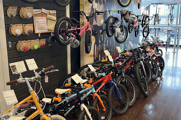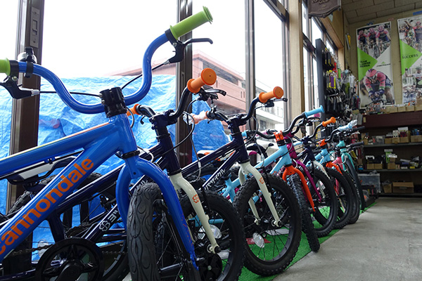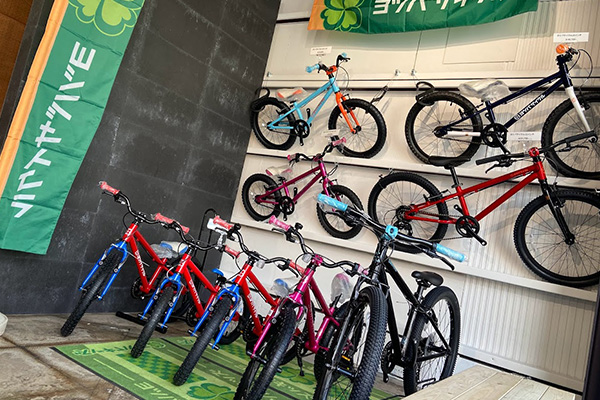 | 店の特徴 | 決して広いとは言えない店内ですが、ご使用目的に合ったお好みの一台を選んでいただけるよう、なるべくいろいろな種類の自転車を展示し、試乗車もたくさんご用意しています。 見て乗って納得してお買い求めいただけるよう心がけています。 また補修パーツをできるだけ多種取り揃え、お待たせしない修理を心がけています。 12インチから26インチまでの子供向け自転車を展示しています。 カラフルな自転車から特別な一台を見つけてください。 |